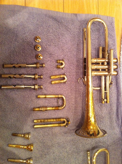 トランペットを洗うついでにコルネットも一緒に洗ってあげました。