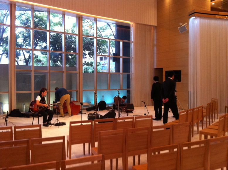 床は大理石で、天井の高い会場で音の周りが心配でしたが、常駐のPAさんの腕がよく、かなりやりやすかったですよ。