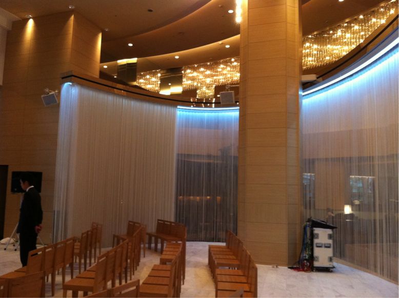 演奏中は開きましたが、そうめんの様なカーテンが(笑)